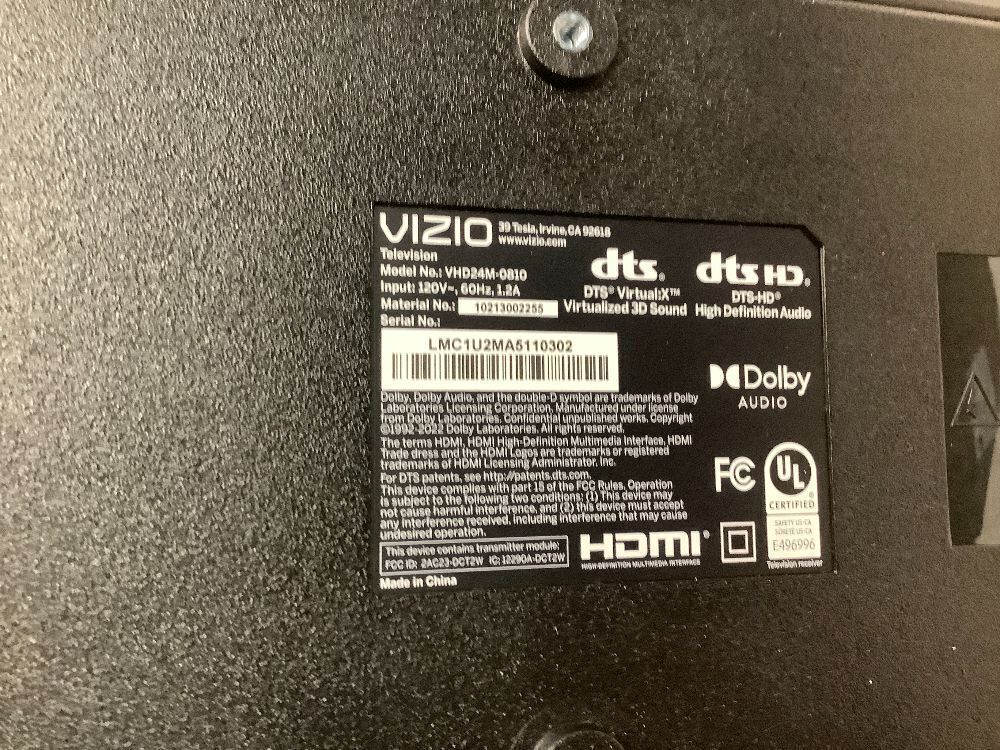 Item PropertiesConditionRepackagedFunctionPowers Up Not Tested FurtherRetail Price$108ModelVHD24M-0810BrandVIZIOColorBlackSize24in