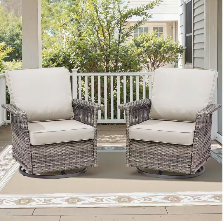 Opohoro GliderNet Gray Wicker Outdoor Rocking Chair Patio Swivel Gliders with Beige Cushions (2-Pack)Item PropertiesConditionNewRetail Price$389.99