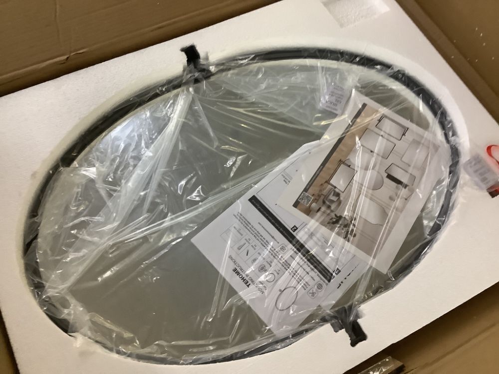 TEHOME Luecinda 20 in. W x 30 in. H Medium Pivot Oval Metal Framed Wall Mirror in Matte Black