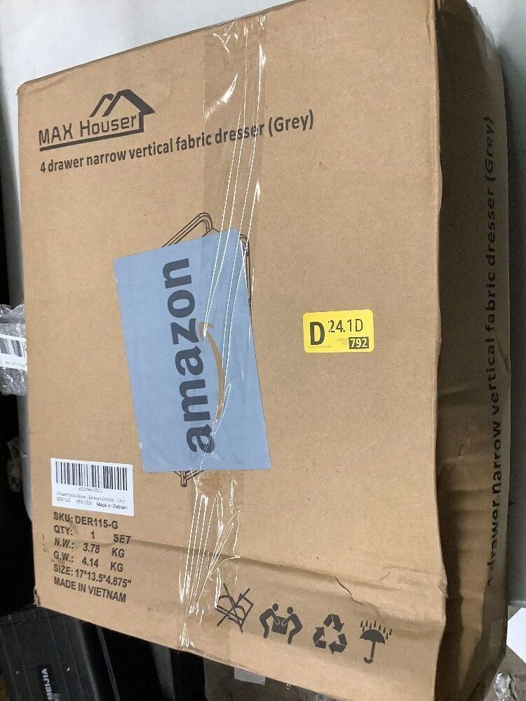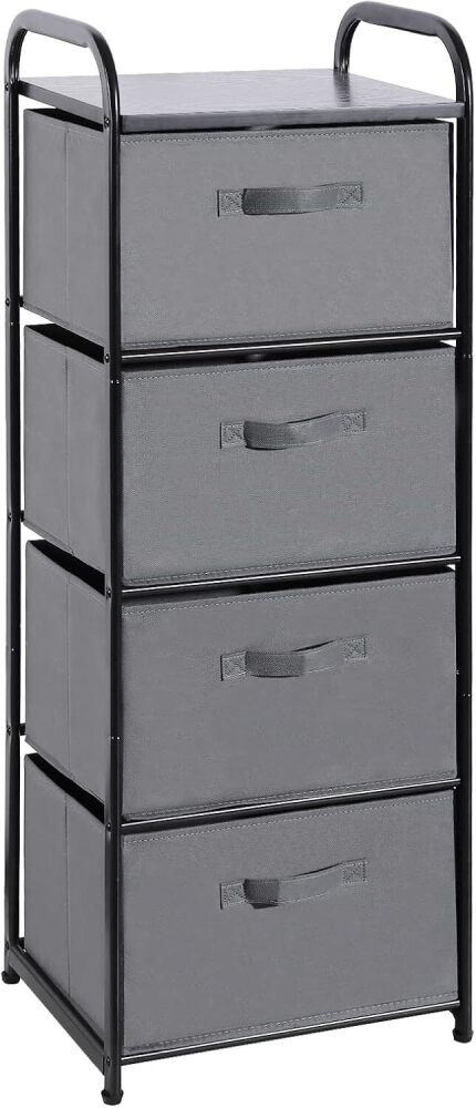 MAX Houser 4 Drawer Fabric Dresser Tall Storage Tower, Dresser Chest with Wood Top, Vertical Nightstand Side Organizer Unit with Metal Frame for Closets Bedroom Nursery Room Hallway(Leaden)