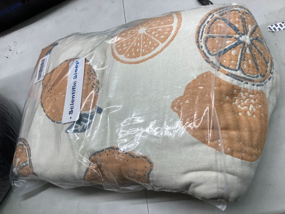 Scientific Sleep Lemon 100% Cotton Muslin Blanket Throw Cover for Bed Couch Sofa Cozy Soft Reversible Bedding Lightweight Warm Bedspread Quilt Coverlet Full Queen F/Q 80 in x 90 in