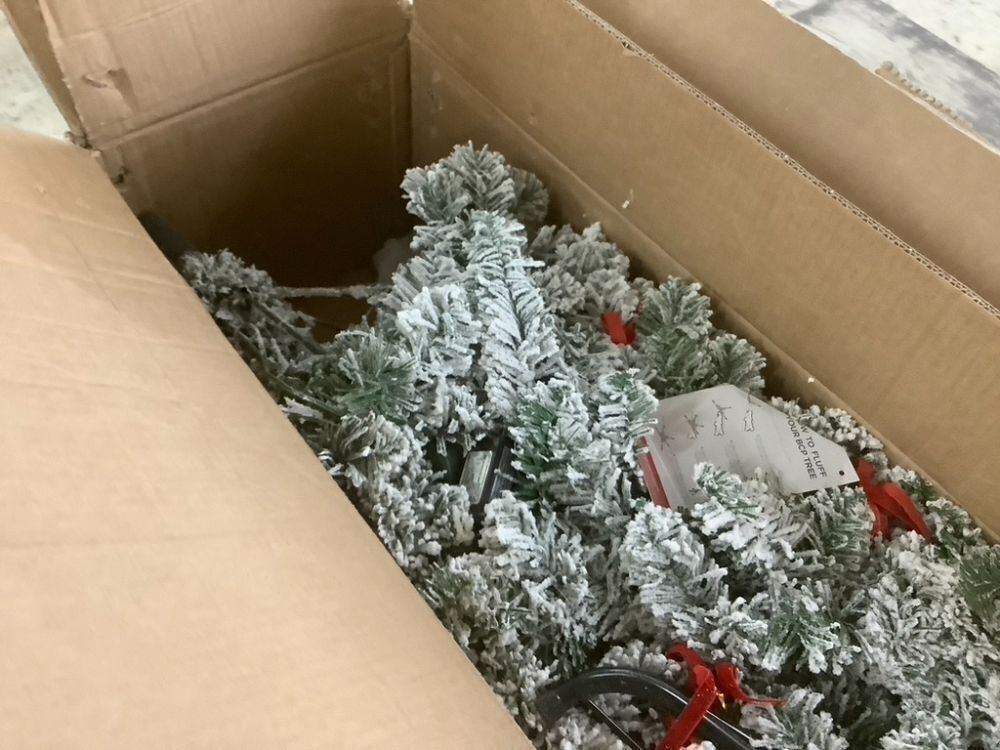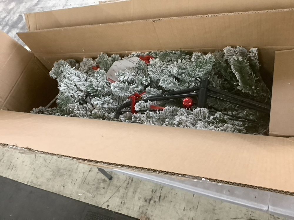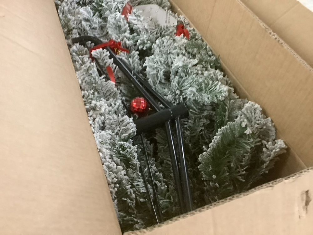 7.5' Pre-Lit Snow Flocked Artificial Pencil Christmas Tree Item PropertiesConditionE-Comm ReturnFunctionUntested