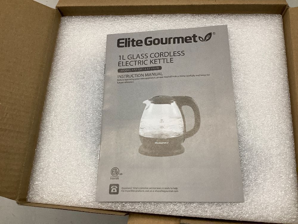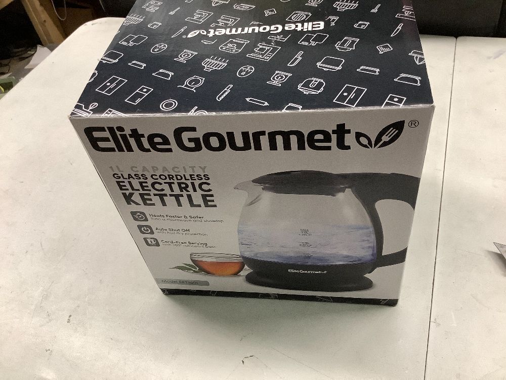 Elite Gourmet EKT1001 Electric 1.0L BPA-Free 1100W Glass Kettle Cordless 360° Base, Stylish Blue LED Interior, Handy Auto Shut-Off Function – Quickly Boil Water For Tea & More, Black