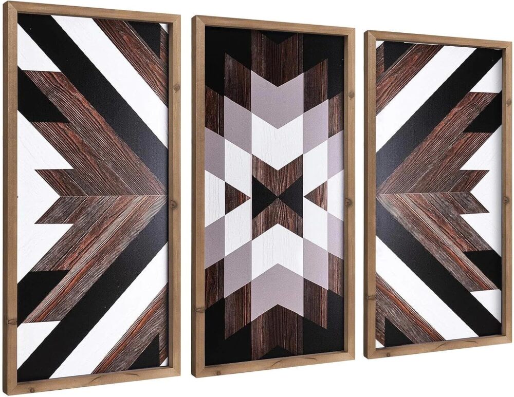 flangairy Set of 3 Aztec Wall Decor, 20.9"x 9.8" Wood Western Wall Art, Native American Tribal Southwestern Modern Boho Southwest Living Room Bedroom Kitchen Bathroom Rustic Farmhouse Home Decorations