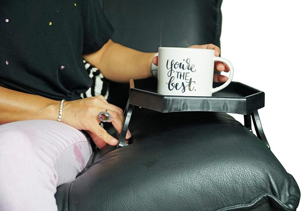 Home-X (16 Count) Armrest Organizer, Sofa Tray for TV Remote, Meals, Snacks, and More (Black)