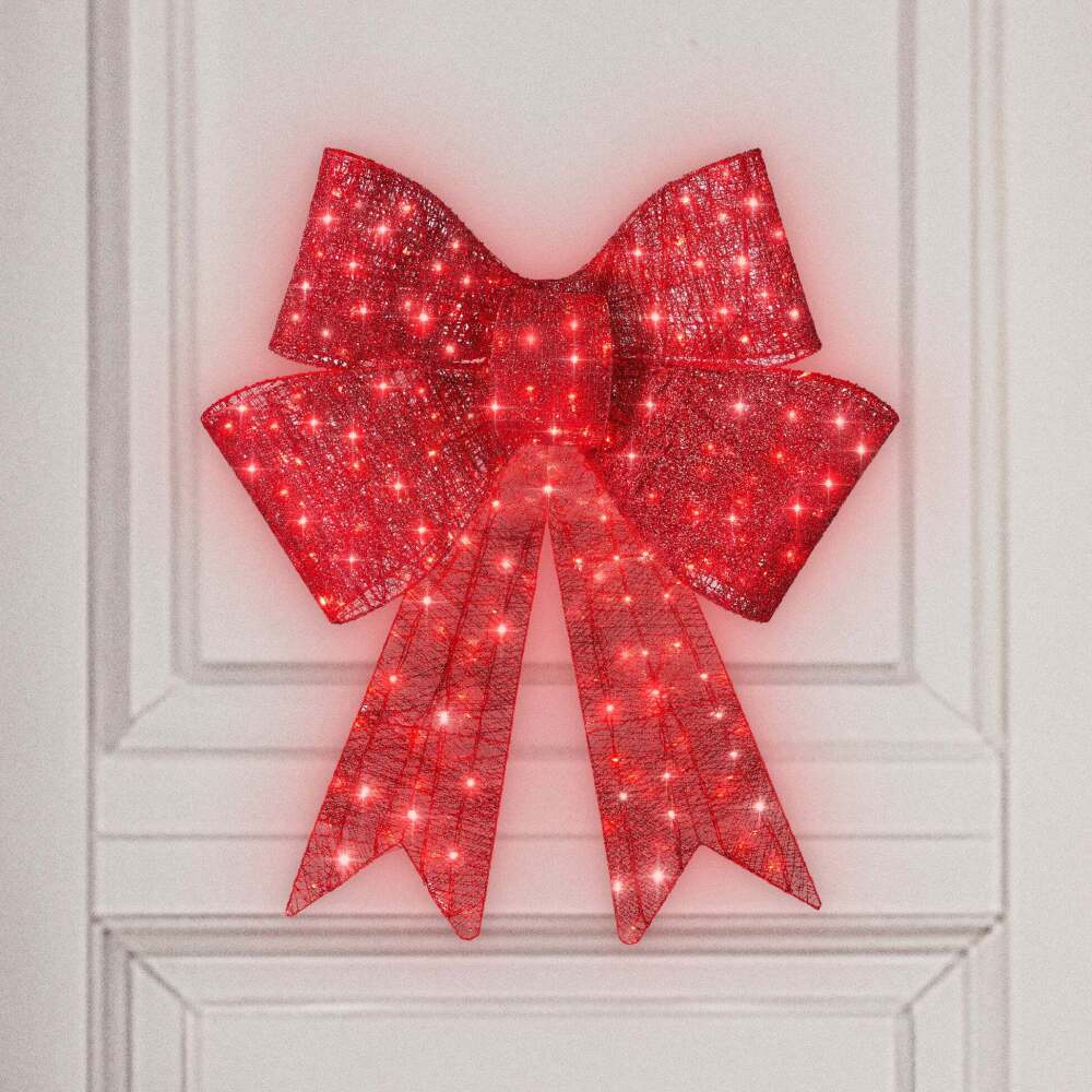 Pre-Lit Large Christmas Bow Decoration, Holiday Decor w/ 8 Functions