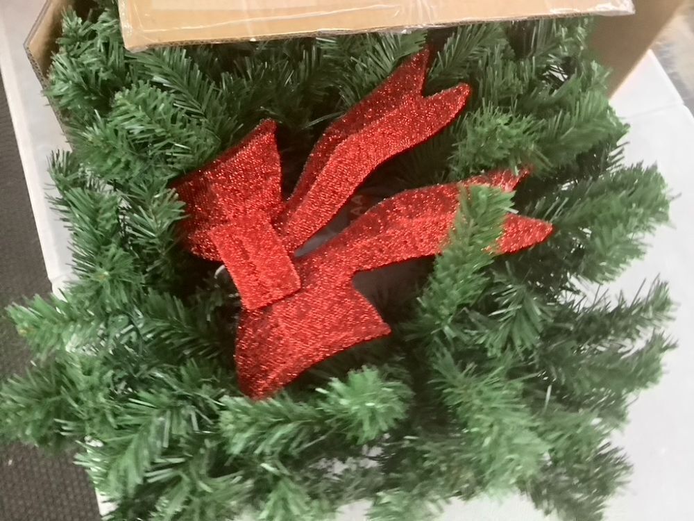24" Pre-Lit Artificial Fir Christmas Wreath w/ Red Bow, LED Lights