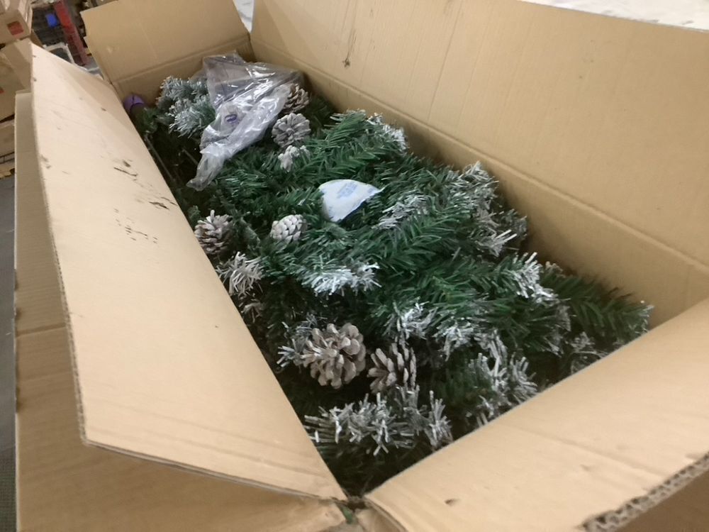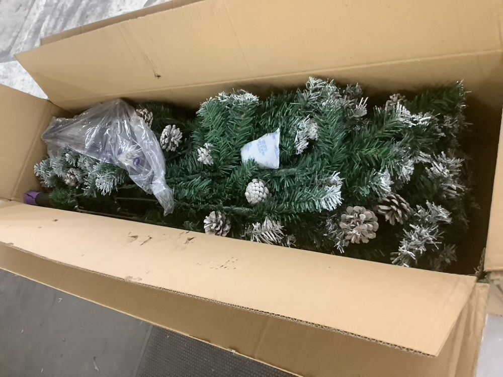 7.5' Pre-Decorated Christmas Tree w/ Pinecones, Flocked Branch Tips Item PropertiesConditionAppears NewRetail Price$99.99