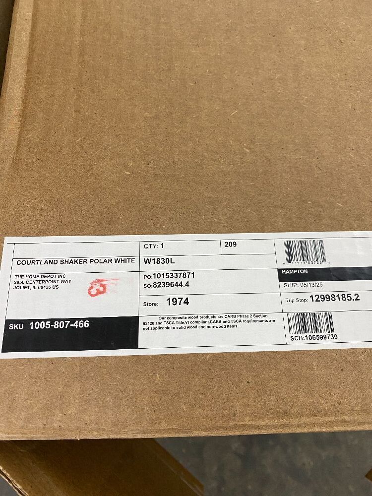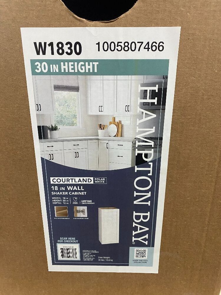 Hampton Bay Courtland 18 in. W x 12 in. D x 30 in. H Assembled Shaker Wall Kitchen Cabinet in Polar WhiteItem PropertiesConditionE-Comm Return/Appears NewRetail Price$165.00