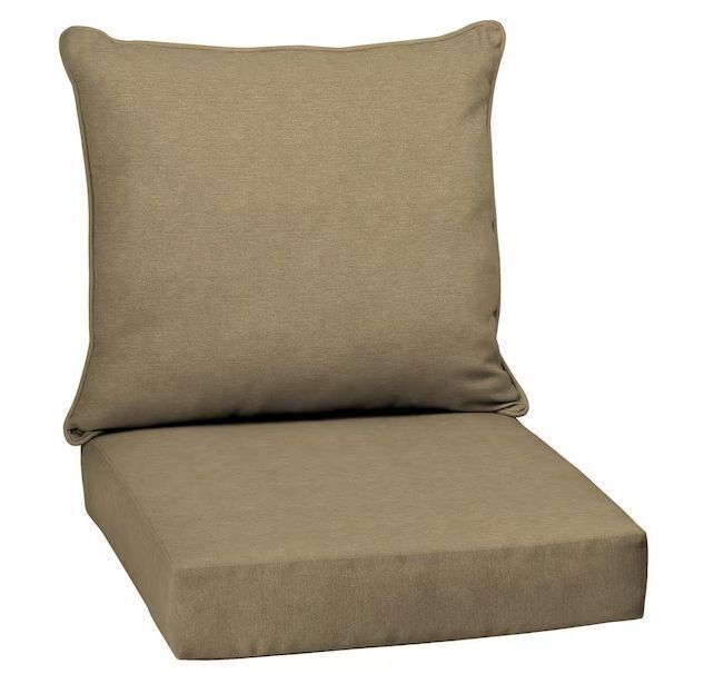 Lot of (3) ARDEN 24 in. x 24 in. 2-Piece Deep Seating Outdoor Lounge Chair Cushion in Tan HamiltonItem PropertiesConditionAppears NewRetail Price$52.52/ea