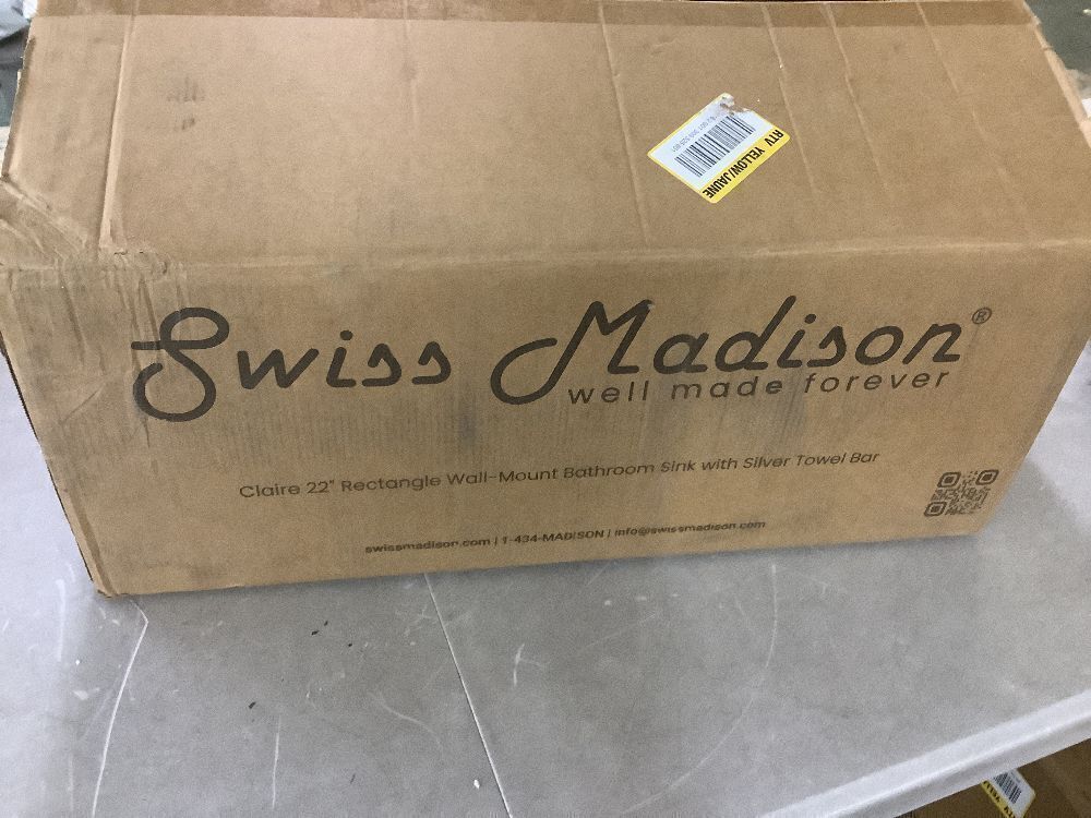 Swiss Madison Claire 22 in. Rectangle Ceramic Wall Mount Bathroom Vessel Sink with Silver Towel Bar ,Item PropertiesConditionAppears NewRetail Price$87.17